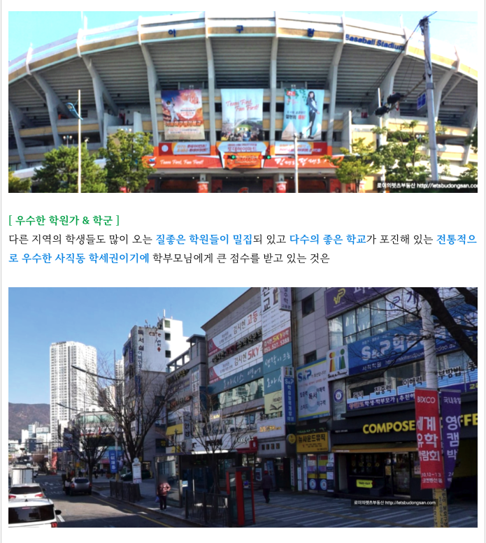 사직동은 사직중, 여명중, 사직고, 동인고, 사직여고등 많은 우수학교들 포진해 있어서