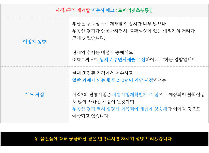 2. 현재 가능한 매물 소개 : 사직3구역 재개발 :