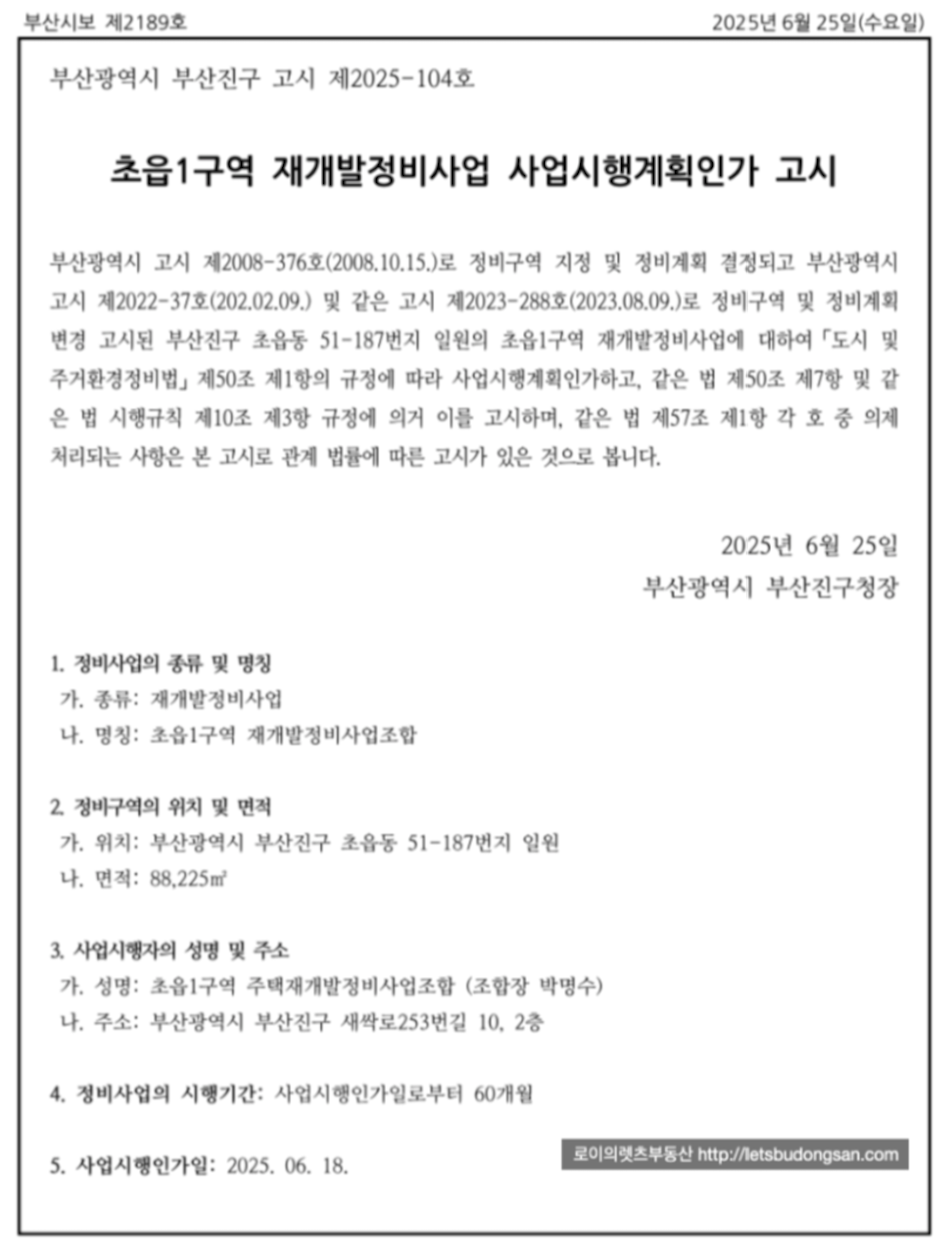 (사시고시!!) 초읍1구역 재개발 : 매물 & 진행 상황 ( 사업시행계획인가 고시 06.25 )
