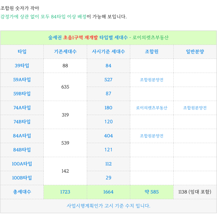 조합원 비율은 불과 약 35% 정도로 대단히 낮아 좋은 사업성 가지고 있습니다.