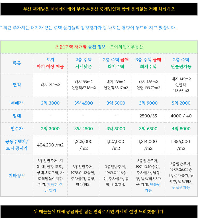 부산 전역 재개발에 대해 궁금하신 사항은 방문 또는 연락주시면 자세히 설명 드리겠습니다.