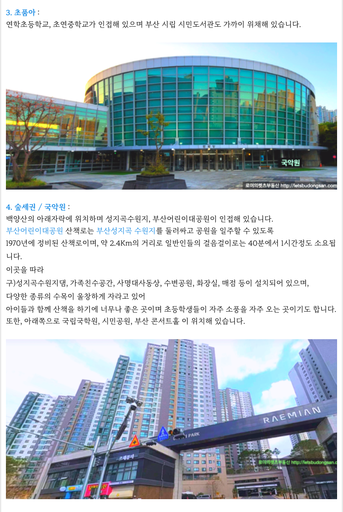 부산 시민 도서관도 가까이 있어 좋은 교육 환경을 가지고 있습니다.