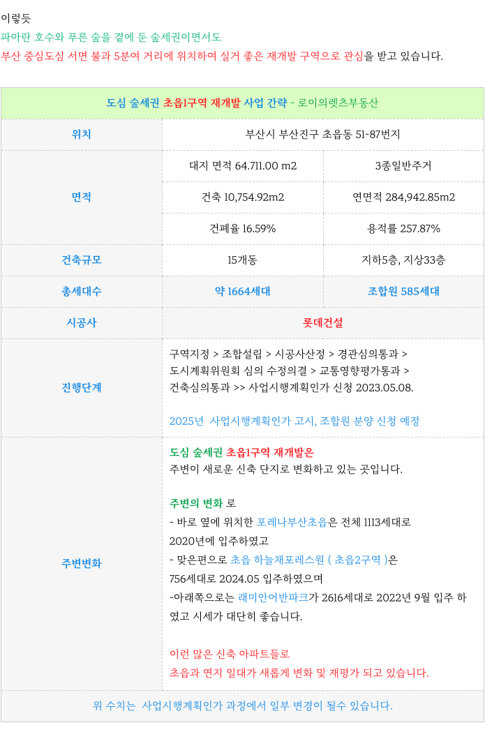 안녕하세요 로이의렛츠부동산 ( JAK 제이에이케이 부산 ) 입니다. 오늘은 도심속 숲세권 초읍1구역 재개...