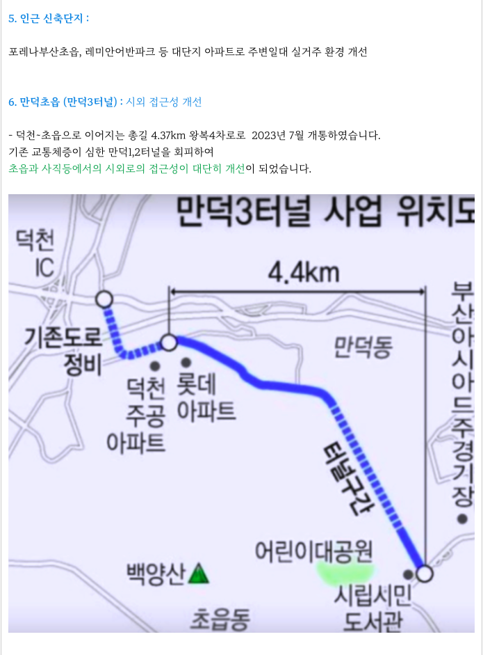 또한, 만덕 초읍 (아시아드) 터널이 개통되어