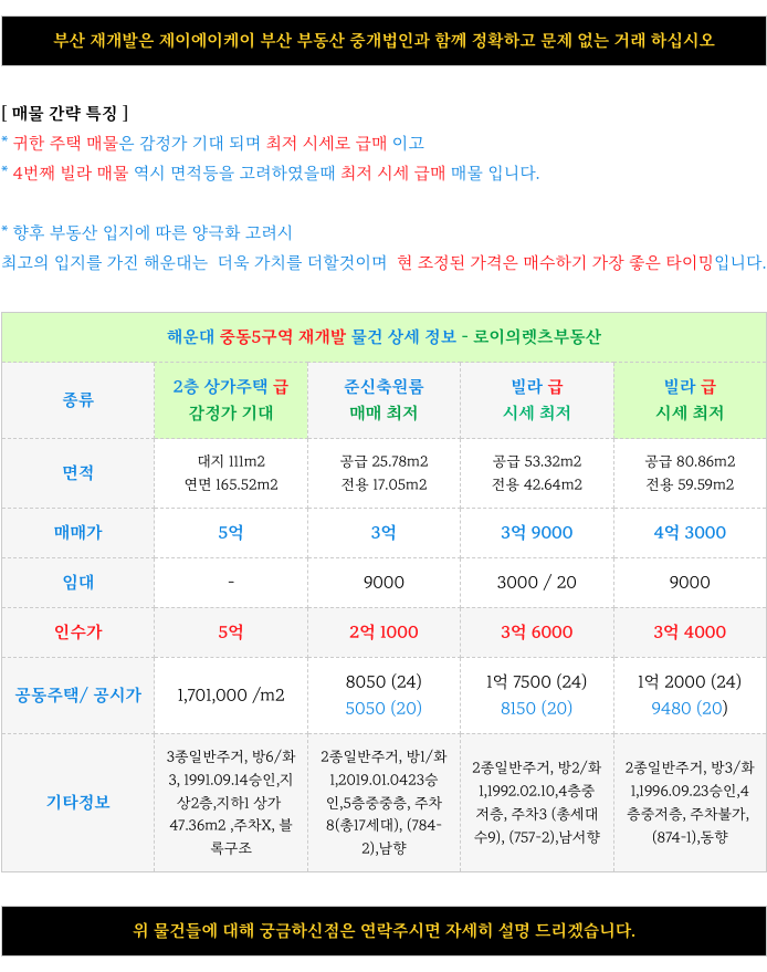 2. 증동5구역 재개발 : 현재 가능한 매물 소개 :