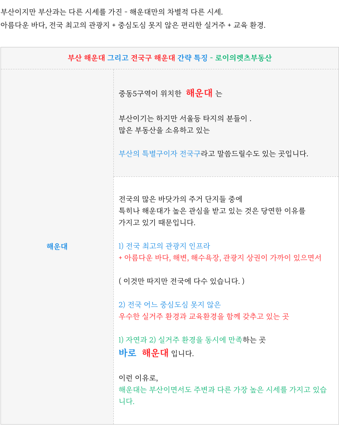 해운대라는 부산의 특별한 곳에 위치한 재개발로