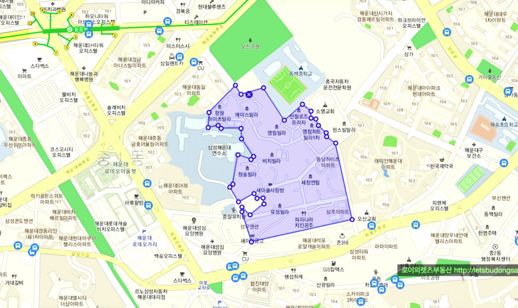 해운대 특성상 고층 단지에 내부 단지가 거의 없거나 작은 곳들이 대부분 많지만