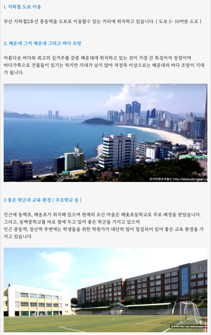해운대 입지는 일분 없는 재건축을 해도 좋은 입지와 시세로 단점이 보완 됩니다.