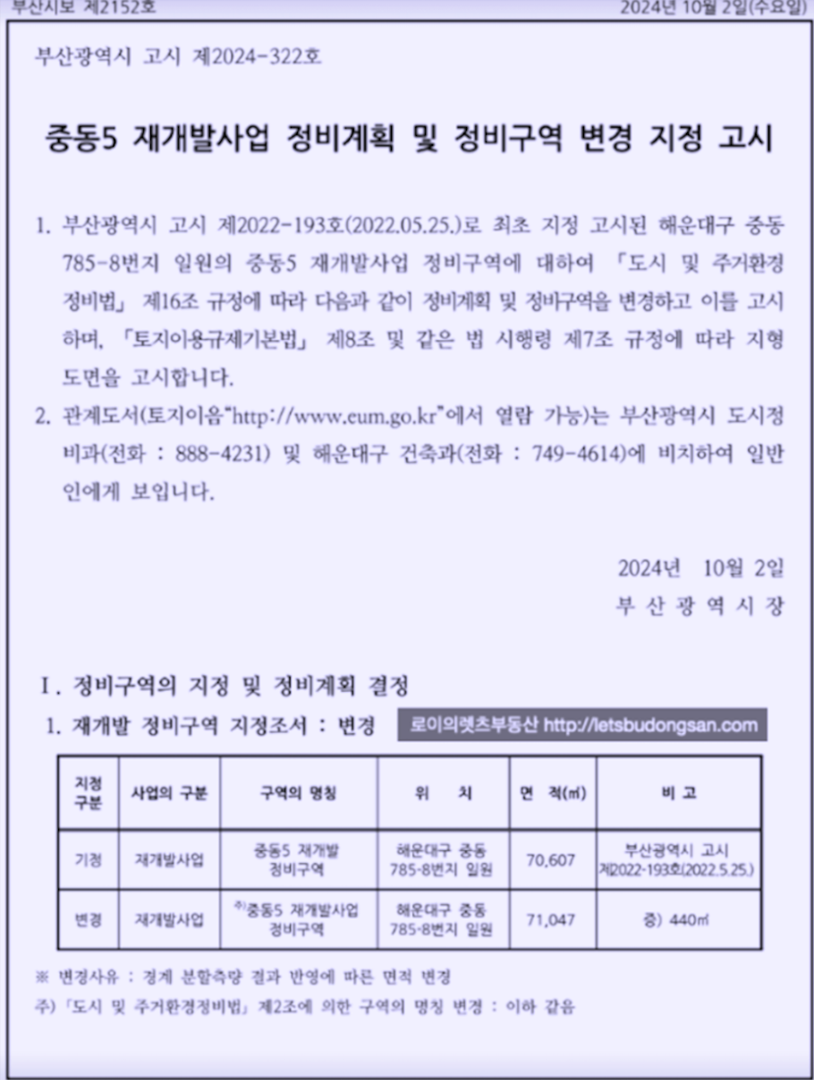 (아크로 해운대) 중동5구역 재개발 현재 추/ 천 드리는 매물 & 진행 상황