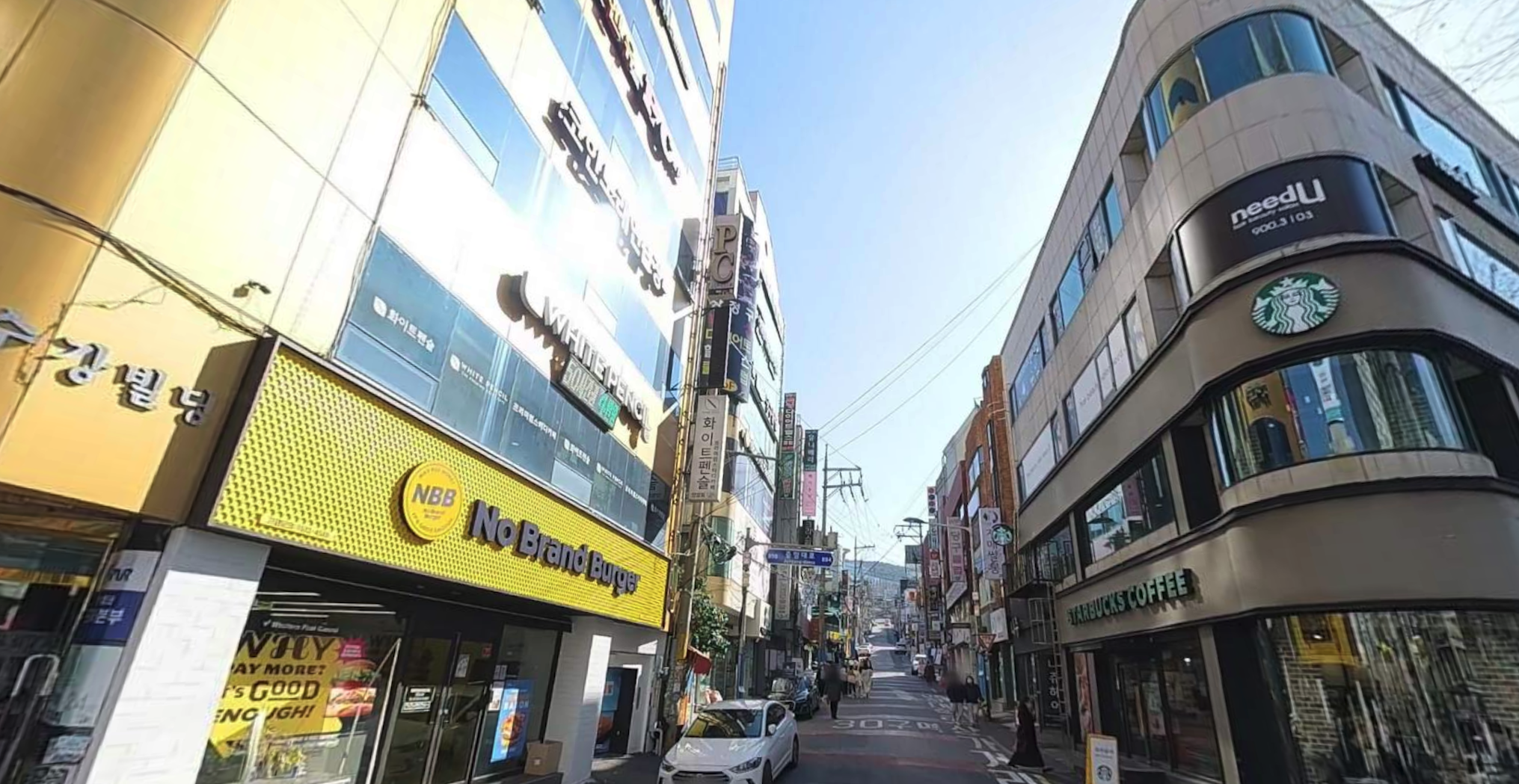 대로변으로 2개 블록 정도가 부산 여대 아래 양정 메인 상권중 하나로
