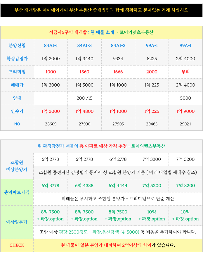 2. 서금사5구역 재개발 : 현재 가능한 매물 소개 :