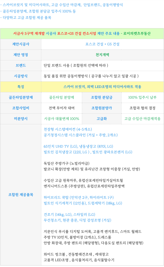 골든타임분양제와 조합원 분담금 입주시 납부 등으로 조합원 둘에게 좋은 조건이 됩니다.