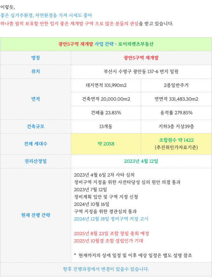 광안5구역 재개발 : 창립총회 일정, 소식 & 최저 추/ 천 매물 소개해 드리겠습니다.
