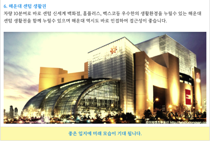 해운대 센텀 생활권으로 ( 차량 10여분 )