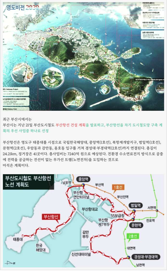 또한, 부산시의 차기 도시철도 계획으로 영도에서 북항 그리고 남구 대연동으로 이어지는