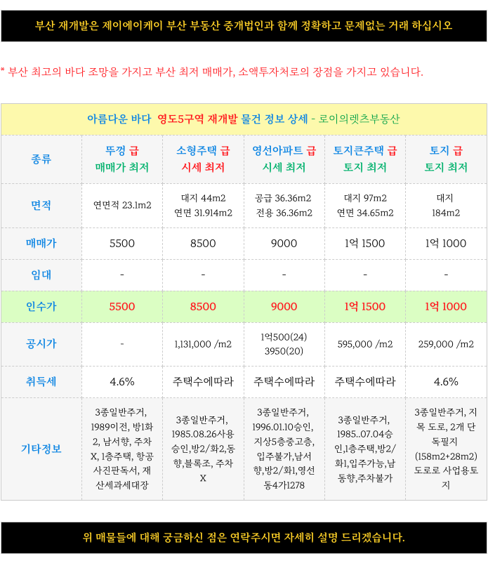 부산 전역 재개발에 대해 궁금하신 사항은 방문 또는 연락주시면 자세히 설명 드리겠습니다.