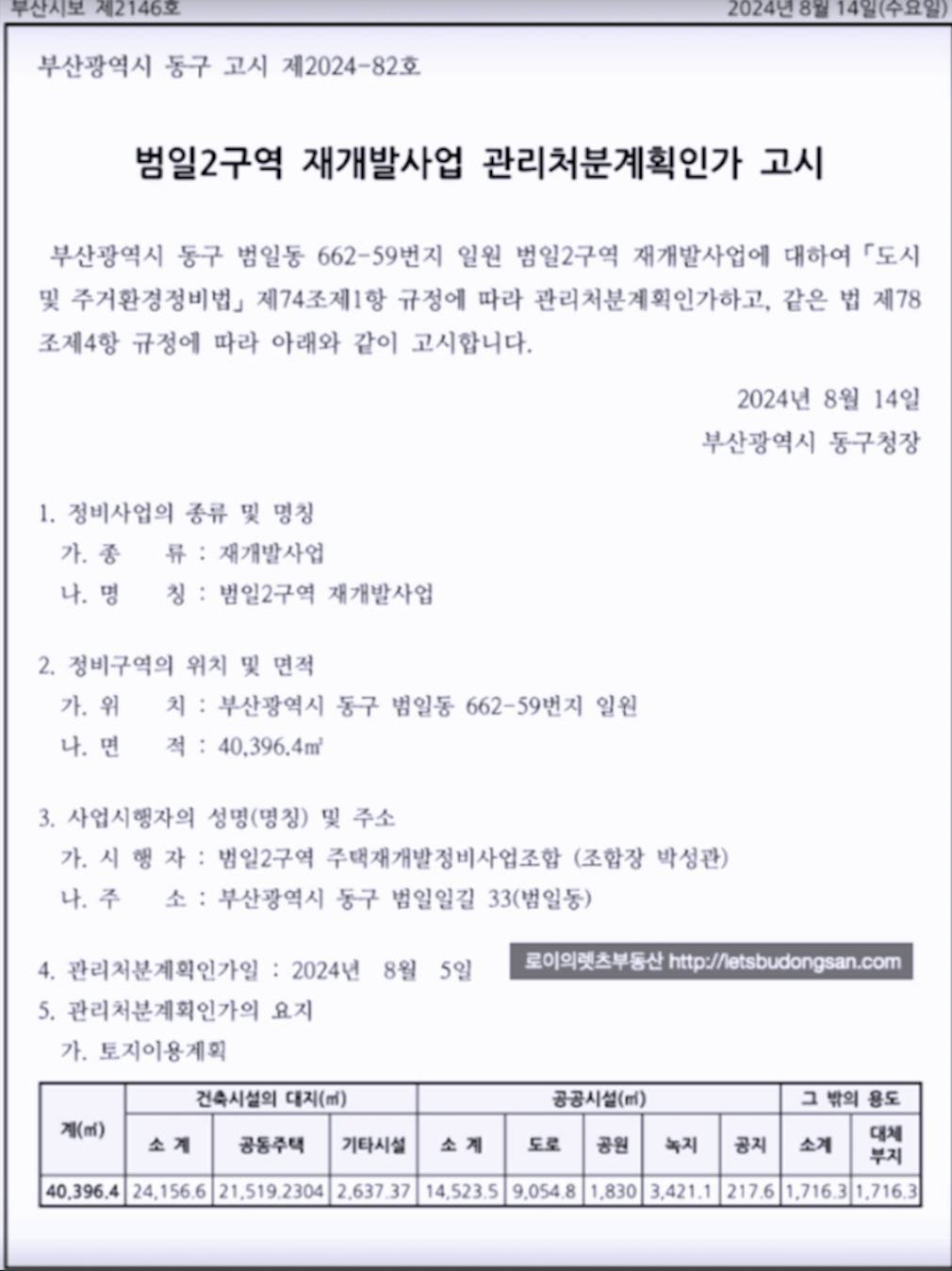 - 2024년 8월 14일 : 관리처분계획인가 고시