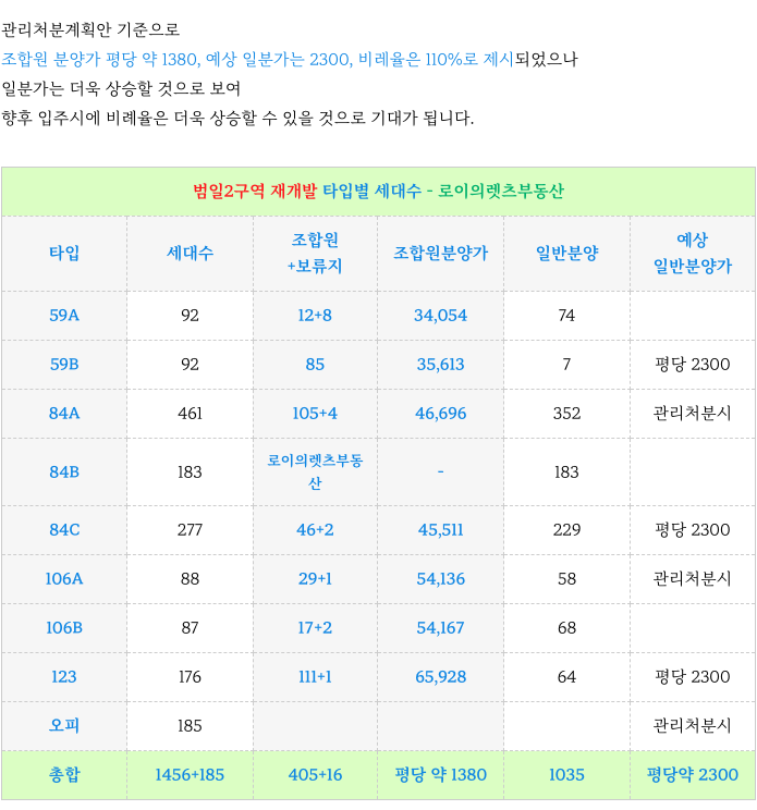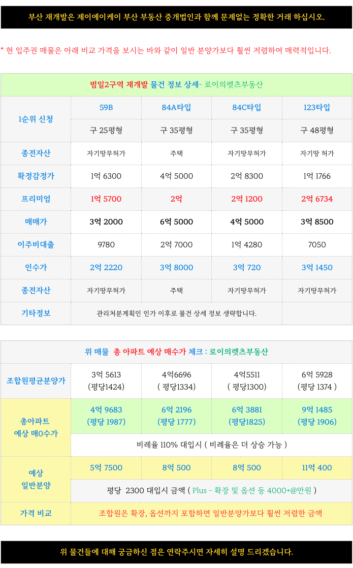 2. 범일2구역 재개발 : 타입별 최저 매물 소개 :