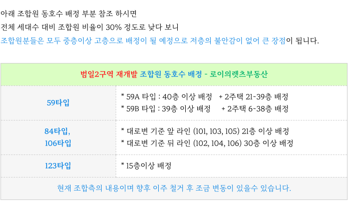 5. 범일2구역 재개발 : 조합원 동호수 배정 방법 :