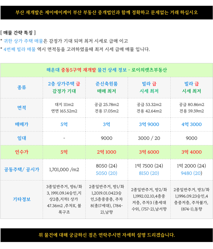 2. 현재 가능한 급 매물 소개 : 중동5구역 재개발 :