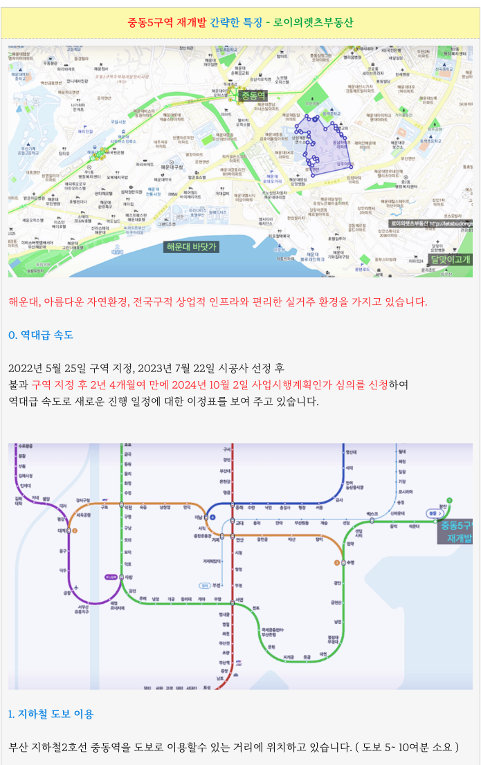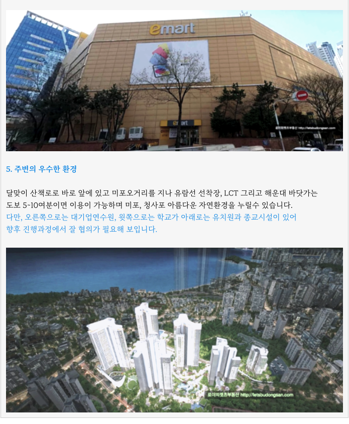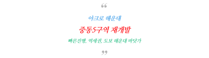 4. 특별한 해운대 특징 간략 : 중동5구역 재개발 :