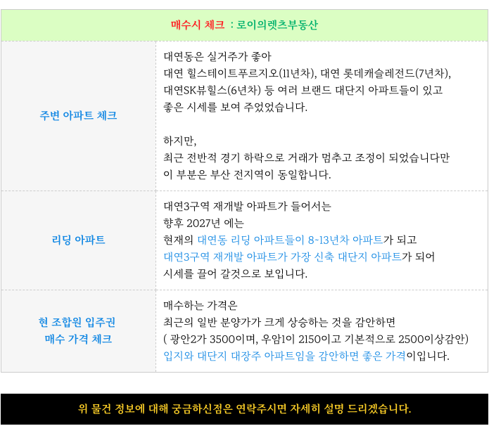 부산 전역 재개발에 대해 궁금하신 사항은 방문 또는 연락주시면 자세히 설명 드리겠습니다.
