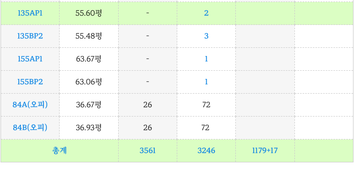 3. 괴정5구역 재개발 : 계획된 각 타입별 세대수 :