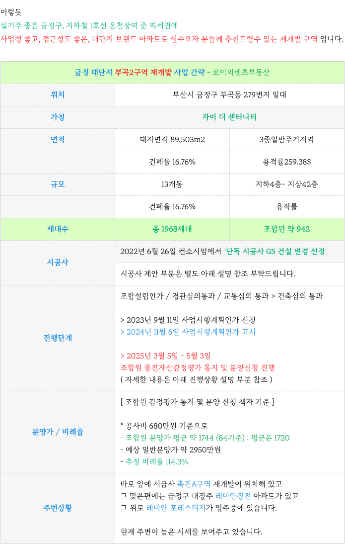 안녕하세요 로이의렛츠부동산 ( JAK 제이에이케이 부산 ) 입니다. 오늘은 진행대비 가성비 부곡2구역 재...