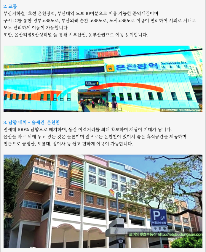 초품아, 준역세권, 숲세권, 온천천, 교통 편리