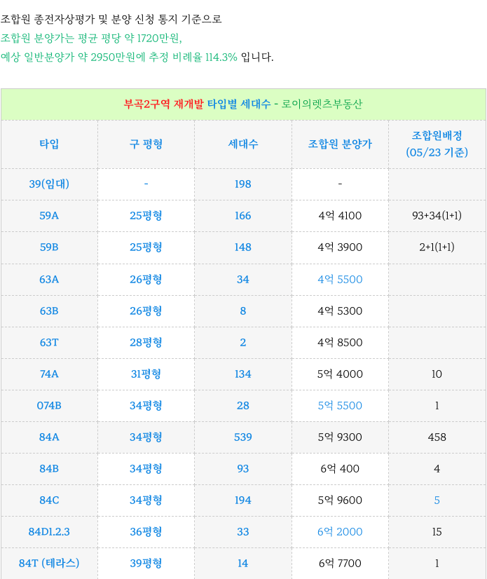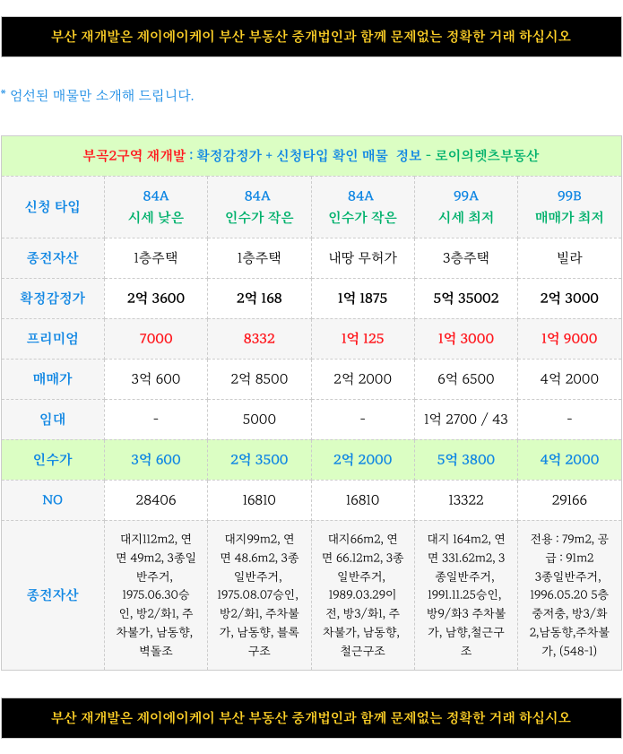 2. 부곡2구역 재개발 : 현재 가능한 매물 소개 : (확정감정가+신청타입) :