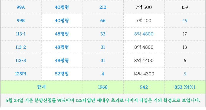 4. 부곡2구역 재개발 : 계획된 각 타입별 세대수 :