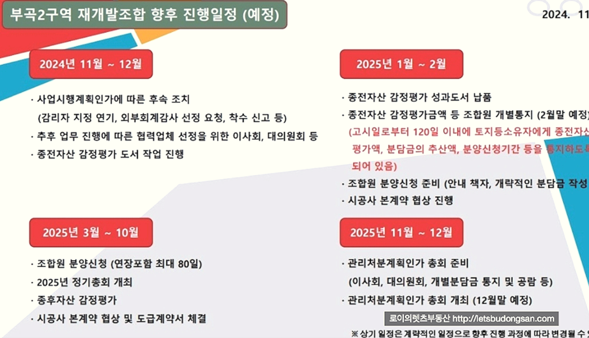 - 2025년 하반기 조합원 총회 거쳐 관리처분계획인가 신청 예정