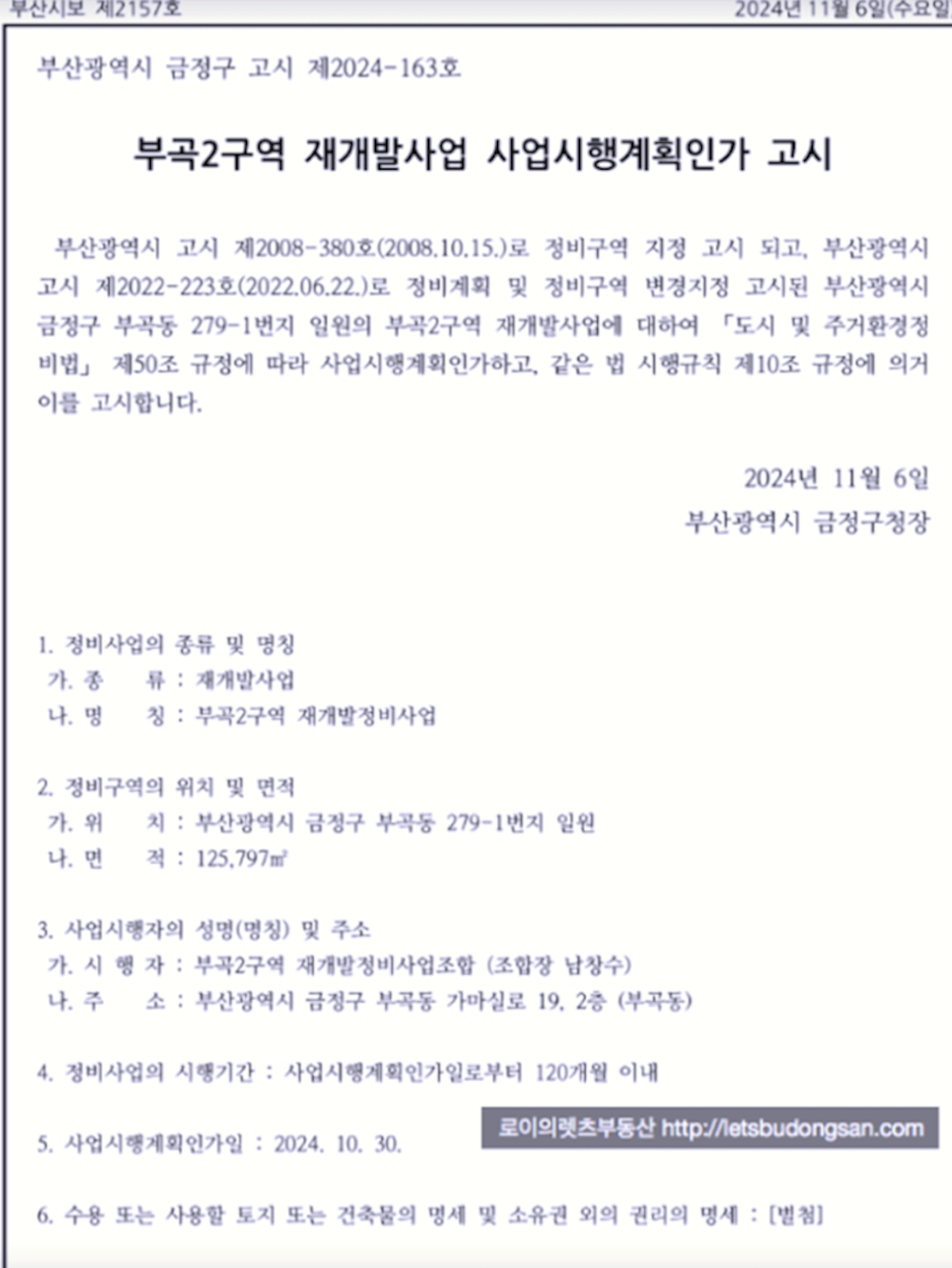 - 2024뇬 11월 6일 사업시행계획인가 고시