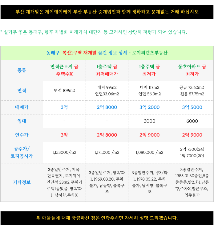 부산 전역 재개발에 대해 궁금하신 사항은 방문 또는 연락주시면 자세히 설명 드리겠습니다.