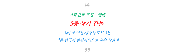 해수부 이전 건물 바로 인근 5층 상가 건물 빌딩 매물 소개해 드리겠습니다.