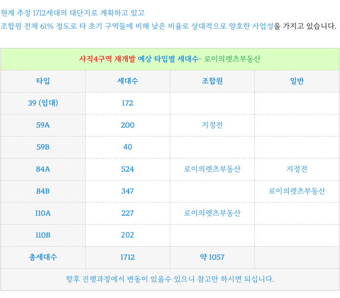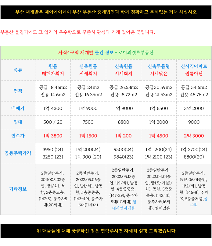 사직4구역 재개발 : 최저 매물 소개 드리겠습니다.