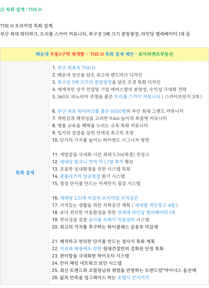 3. 현대건설 THE H 특화 제안 : 우동3구역 재개발 :