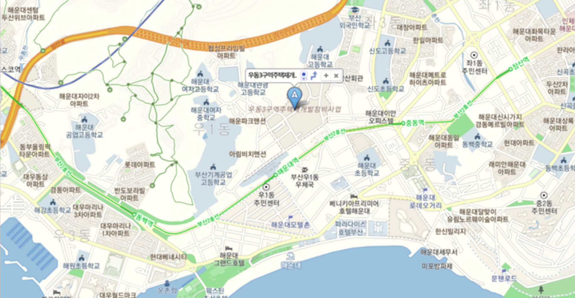 1. 재개발 사업 입지 및 전반 개요 : 우동3구역 재개발 :