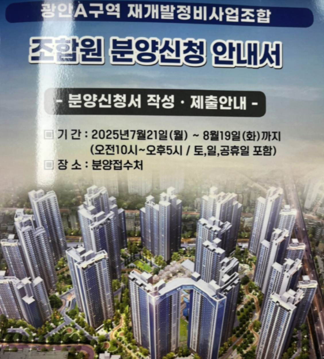 광안A구역 재개발 : 현 무피 매물 그리고 조합원 분양 신청 일정