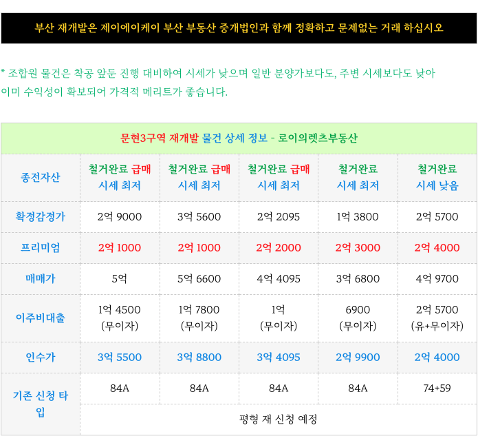 문현3구역 재개발 : 현 최저 매물 정리 드리겠습니다.