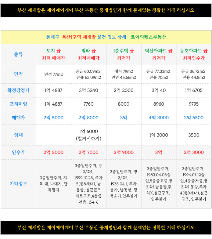 동래 대단지 - 복산1구역 재개발 : 분양신청전 -> 확정감정가 매물