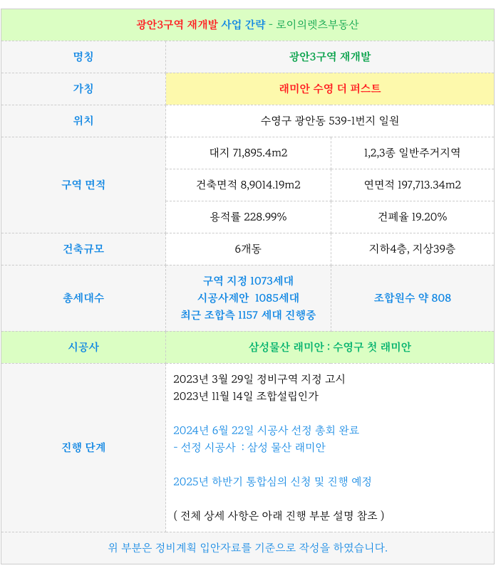 1. 광안3구역 재개발 : 사업 간략 요점 :
