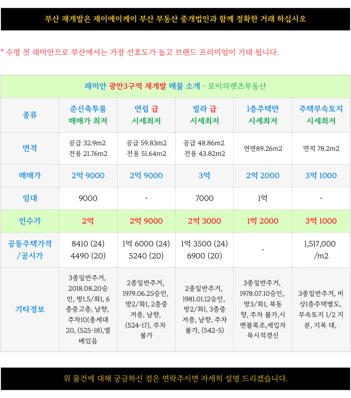 2. 광안3구역 재개발 : 추.천.드.리.는 매물 소개 :