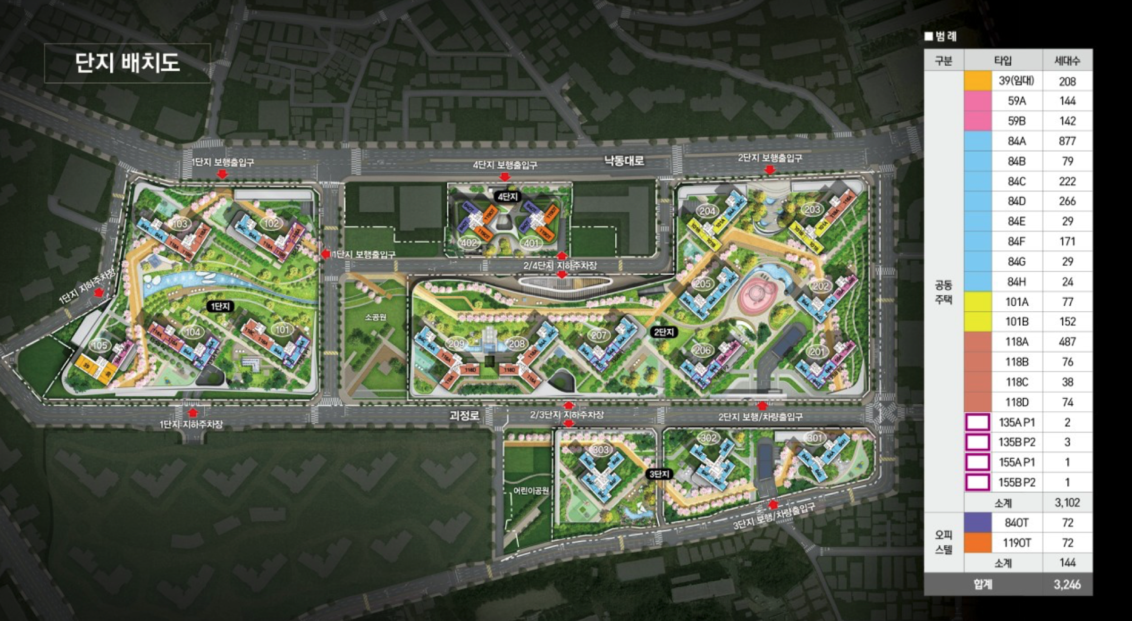 + 26개동 지하4층~지상 39층, 아파트 3509세대, 오피스텔 52호