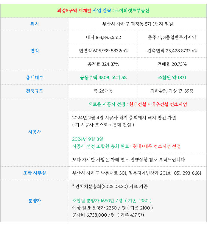 1. 사업 간략 요점 : 괴정5구역 재개발 :