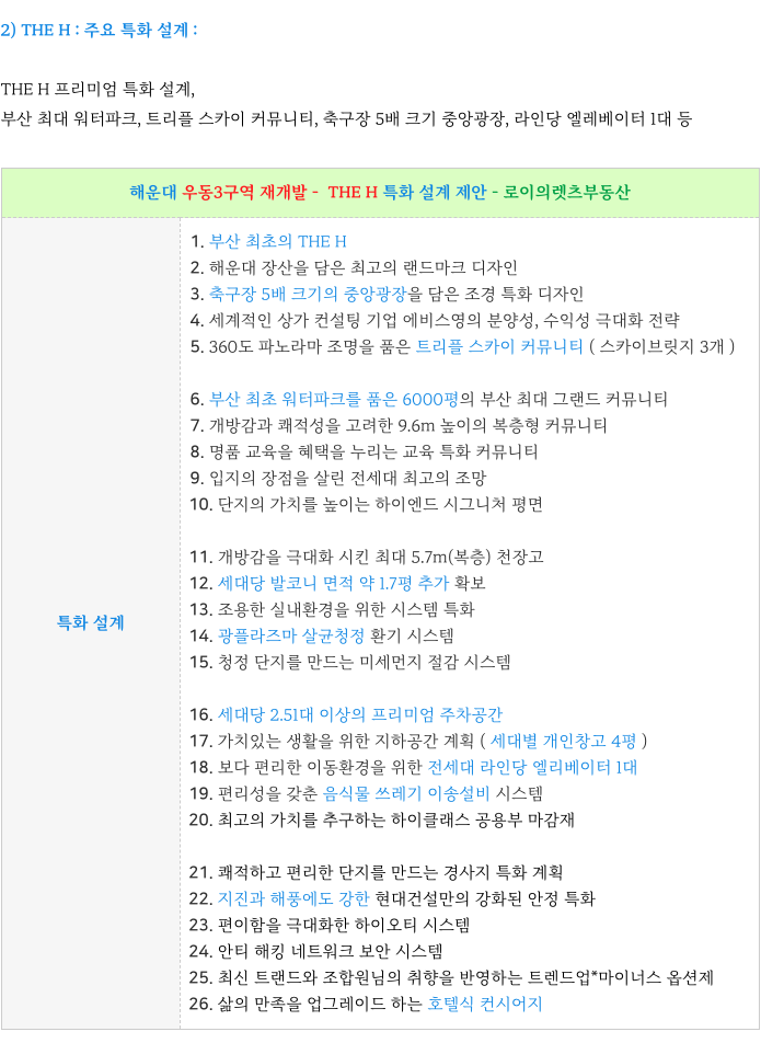 3. 우동3구역 재개발 : 현대건설 THE 주요 제안 체크 :