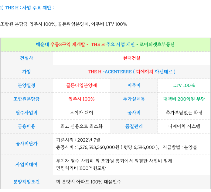 1. 우동3구역 재개발 : 사업 간략 요점 :