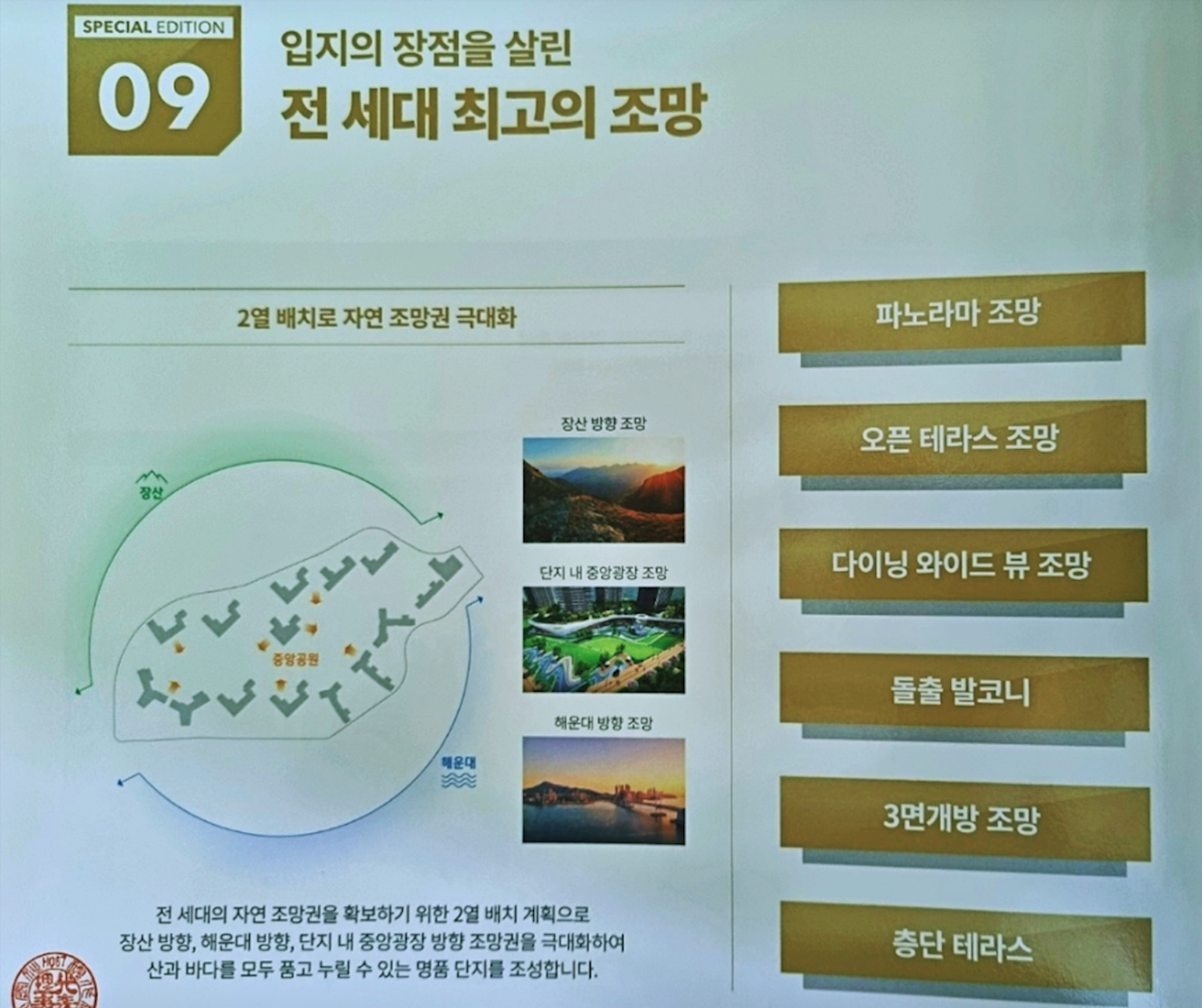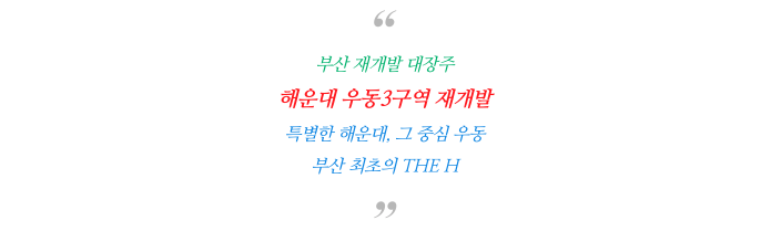아름다운 해운대 바닷가를 도보로 누릴수 있는 큰 장점을 품어 자타공인 부산 재개발 대장주로 불리웁니다.