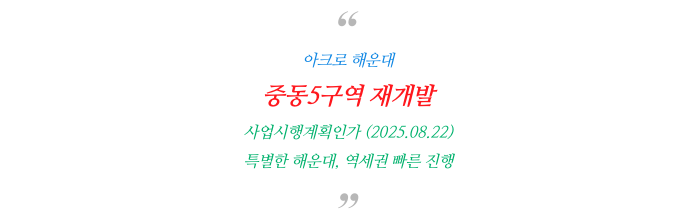 특별한 해운대 + 아름다운 바다 + 좋은 실거주 + 빠른 진행으로 관심을 받고 있는 재개발 구역 입니다.