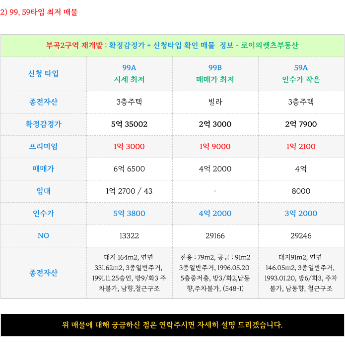 1. 확정감정가 + 타입 지정 매물 소개 : 부곡2구역 재개발 :